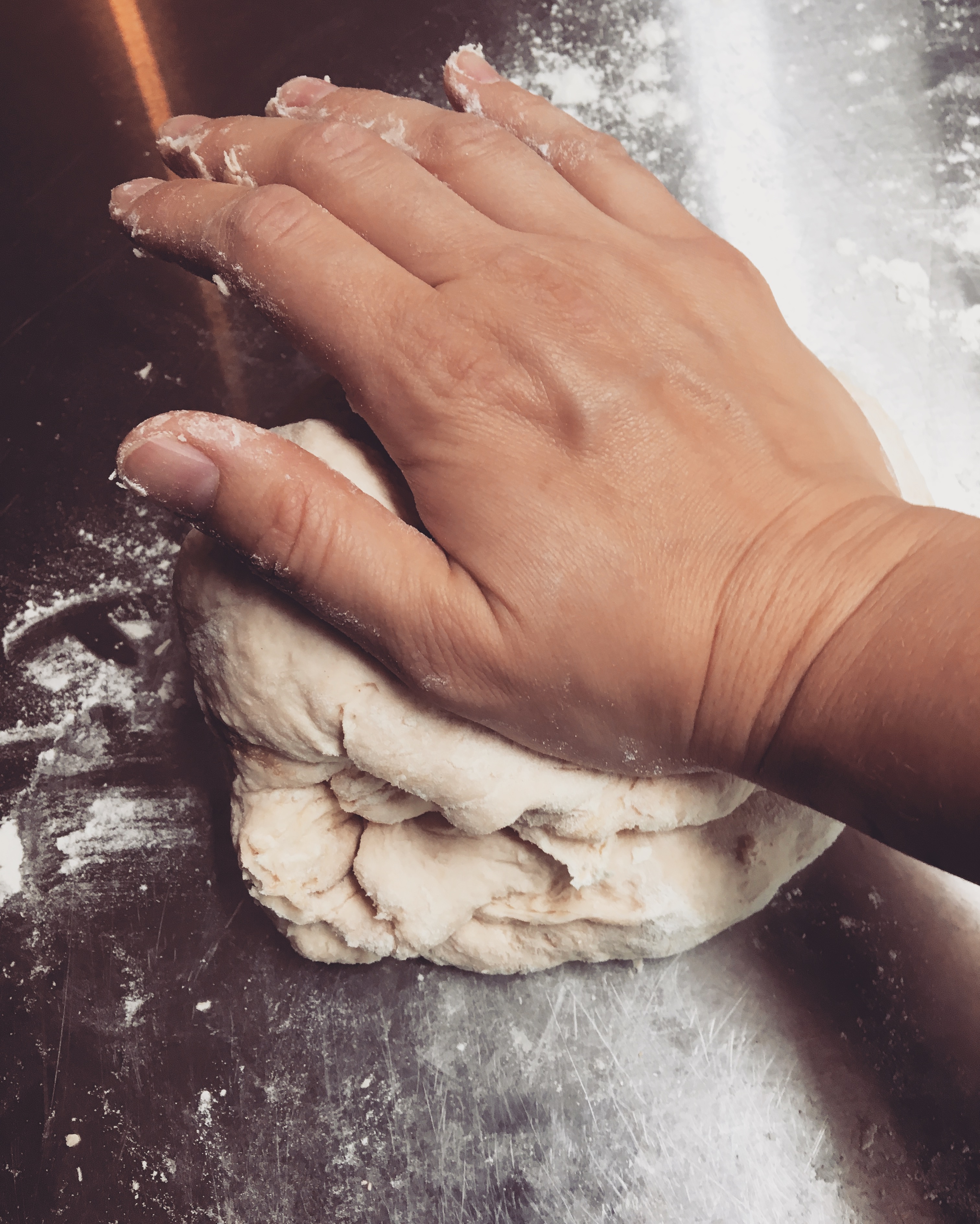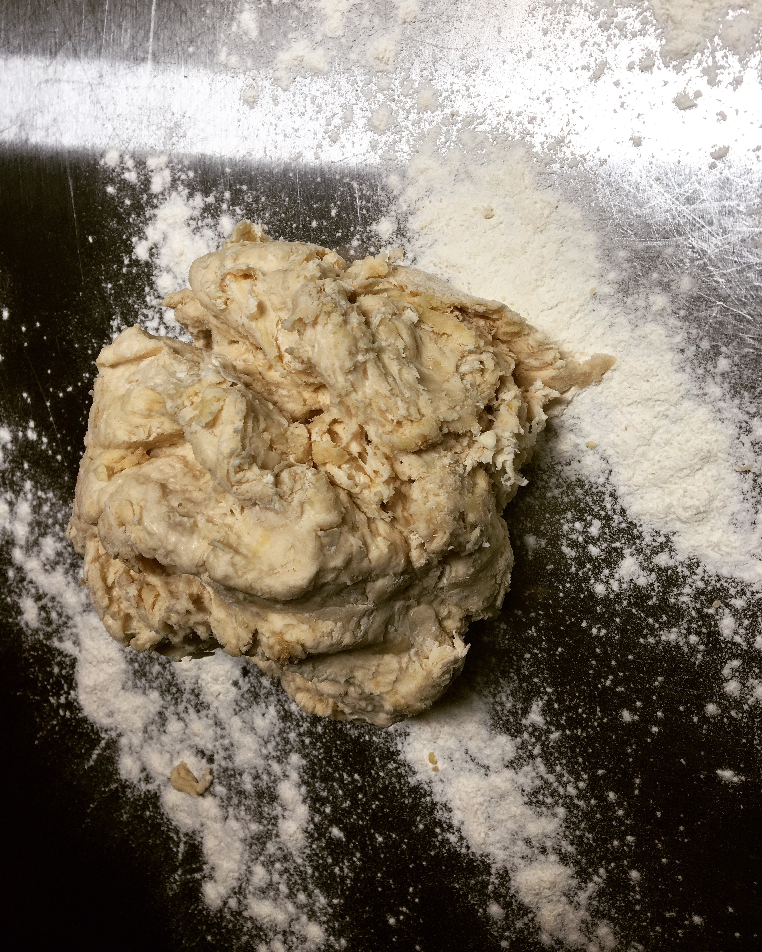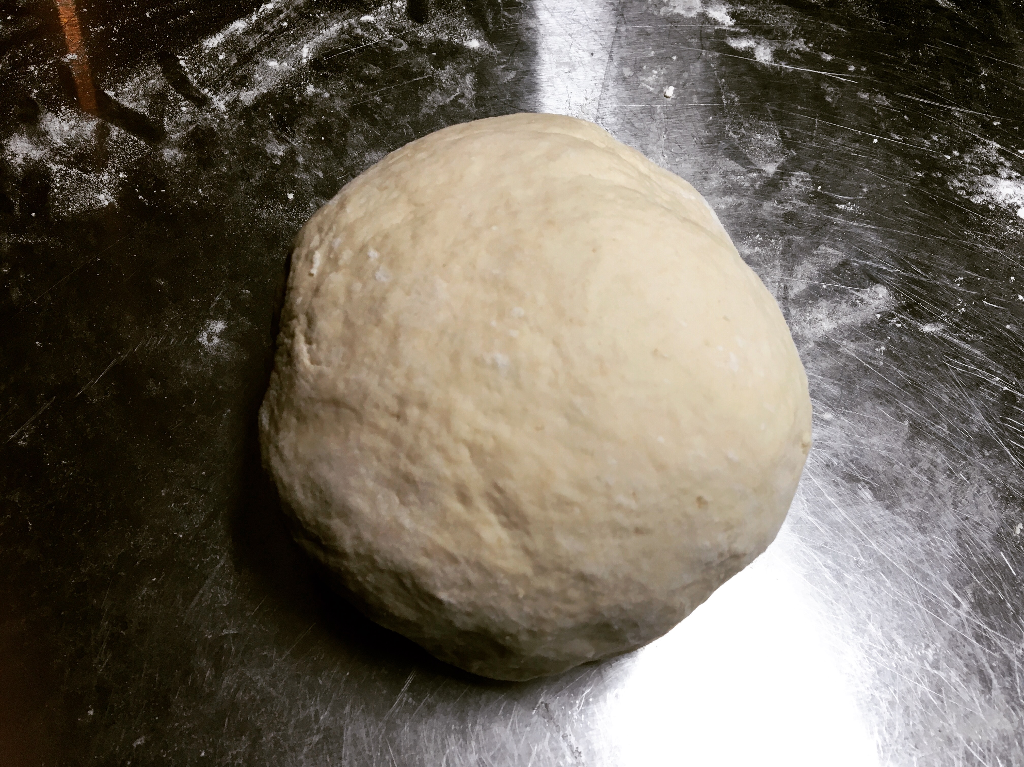 Add four cups flour and the yeast. Mix until the dough has come together, then dump out on a lightly floured work surface and knead until smooth and elasticized-about 3-5 minutes, adding a sprinkle of flour as needed to keep it from sticking. Don’t over flour-you want the dough to be slightly tacky, but not pull away and stick to your hand.