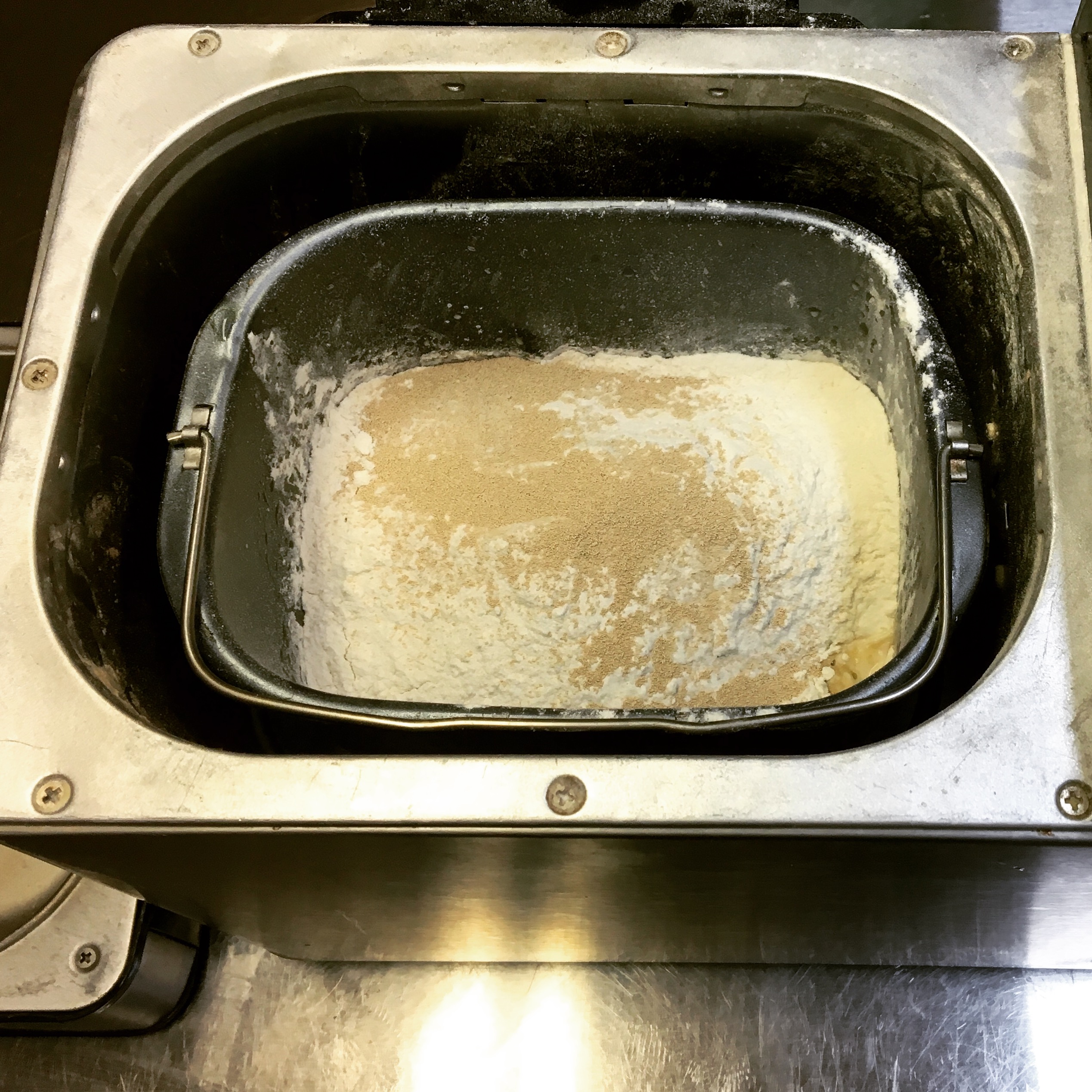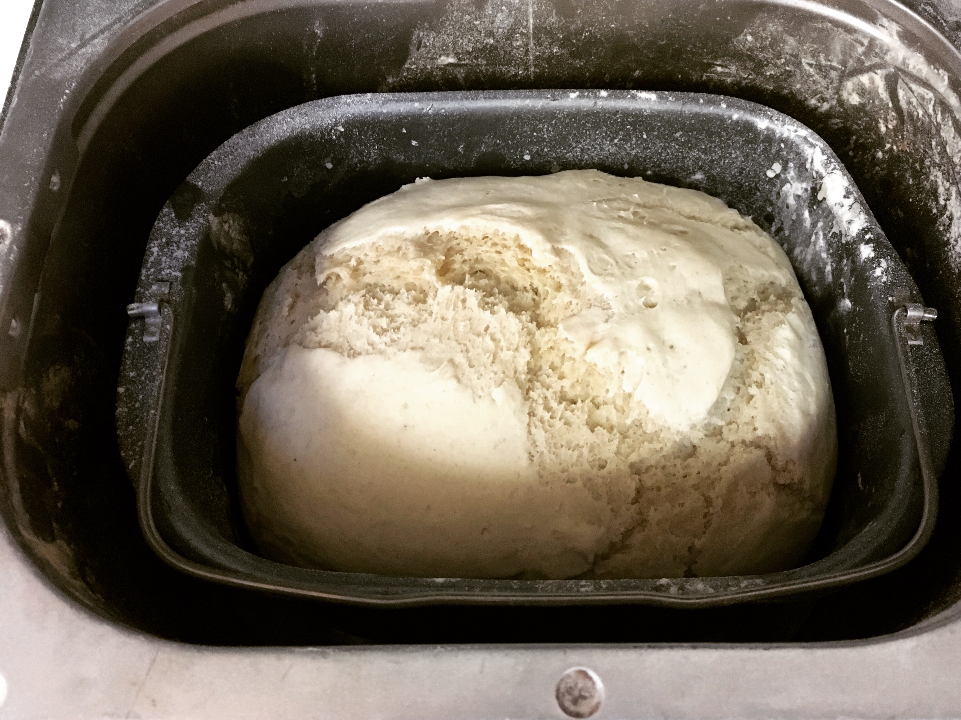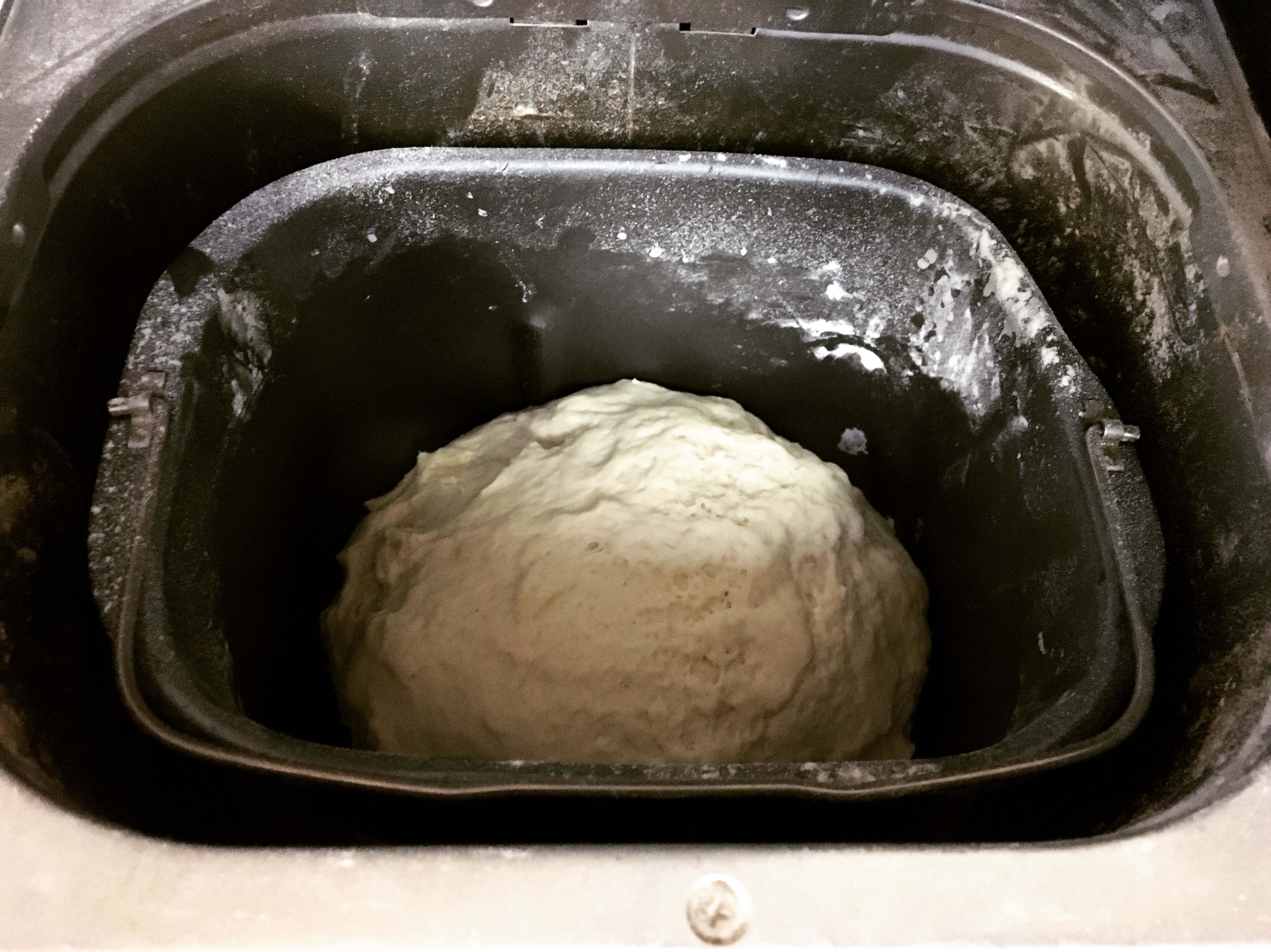 Not surprisingly, I started my bread making journey with a bread machine. A huge honkin cuisanart, here she is in all her glory. She looks pretty banged up, huh? That because my dear sweet bread machine took a tumble or two…or three…right off the counter. That’s what bread machines do, or so I’m told. She busted her lid clean off, but her beauty shines from within and she can still perform her duties just as well as any shiny new machine on the market. Perhaps better, you know, with her years of experience under her belt.